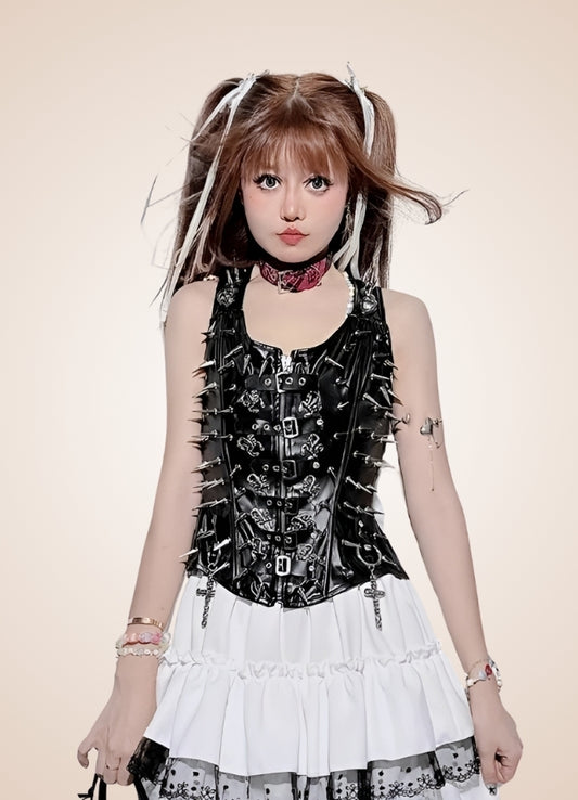 Steampunk Leather Zipper Corset